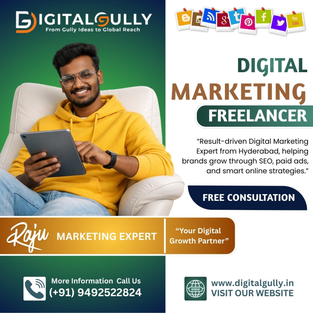 Digital Gully provides expert digital marketing services in Hyderabad, including SEO, Google Ads, Meta Ads, website design, and social media marketing. We help local businesses increase visibility, generate leads, and grow online.